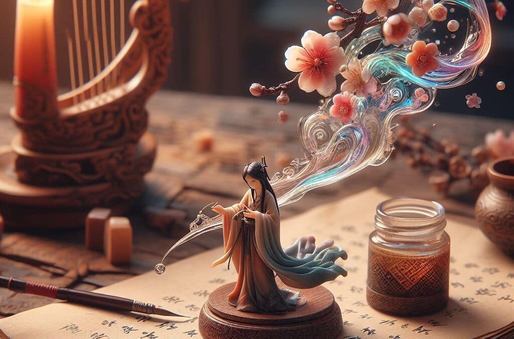 On retrouvera des caractères comme 春 (chūn = printemps), 丽 (lii = belle), 华 (huā = parfum), etc.
